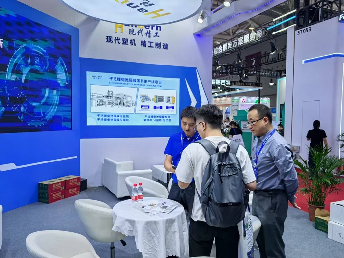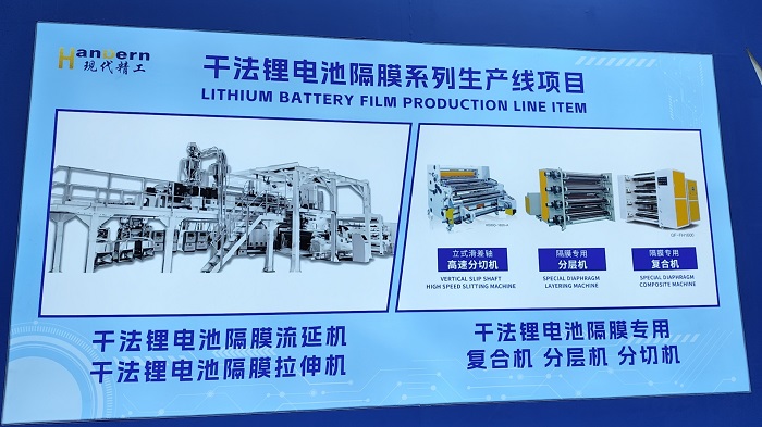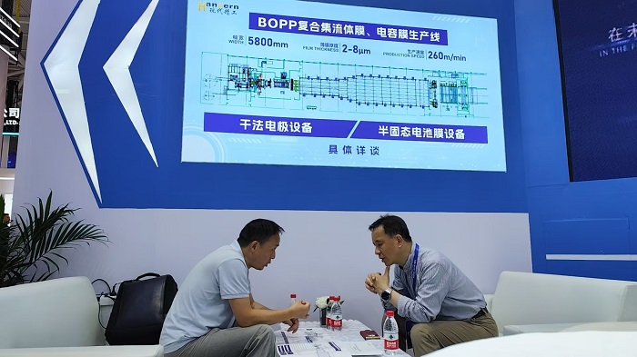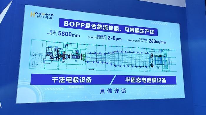 在此次展會上,武漢現(xiàn)代精工機(jī)械股份有限公司(簡稱"現(xiàn)代精工")攜自主研發(fā)的四大核心設(shè)備驚艷亮相,重點展出了包括復(fù)合集流體基膜/電容膜生產(chǎn)線、干法電極設(shè)備、半固態(tài)電池基膜生產(chǎn)線及干法隔膜生產(chǎn)線等高端膜設(shè)備。這些設(shè)備憑借行業(yè)領(lǐng)先的技術(shù)含量和國產(chǎn)化突破,成功打破國外技術(shù)壟斷,現(xiàn)場累計接待專業(yè)訪客超過200組,其中30余家客戶有深度交流的意向。
